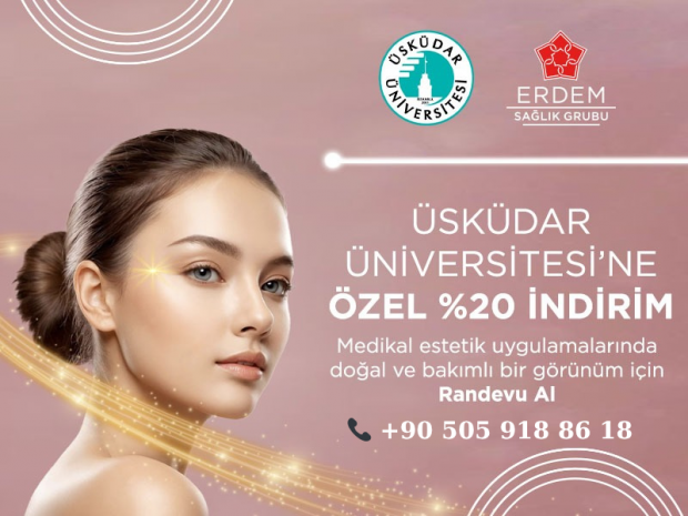 Erdem Sağlık Grubu bünyesinde hizmet veren Çakmak Erdem Hastanesi Medikal Estetik Bölümü tarafından; Üsküdar Üniversitesi öğrencileri ve mezunlarına özel %20 indirim fırsatı sunulmaktadır.